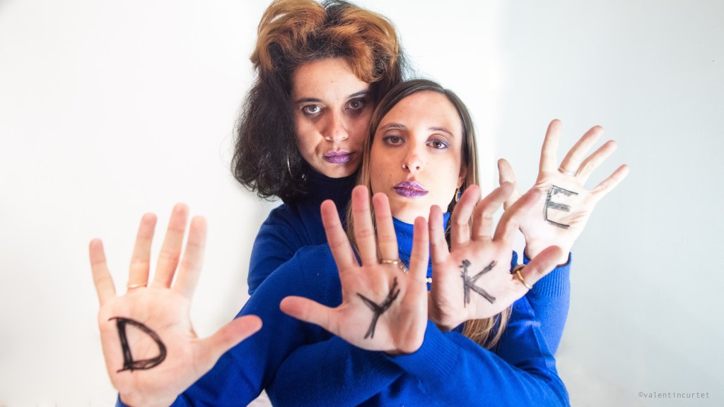 Namoro is a duet created in 2018 and based in Paris, France. Composed by Bili Bellegarde (she/her) and Mascare (she/her), Namoro sings poems over electronic arrangements and they create hybrid music on the border of performance and art as invitations to dance. Namoro was born from two dykes who love each other and their activism comes through furious odes of love and poetry.