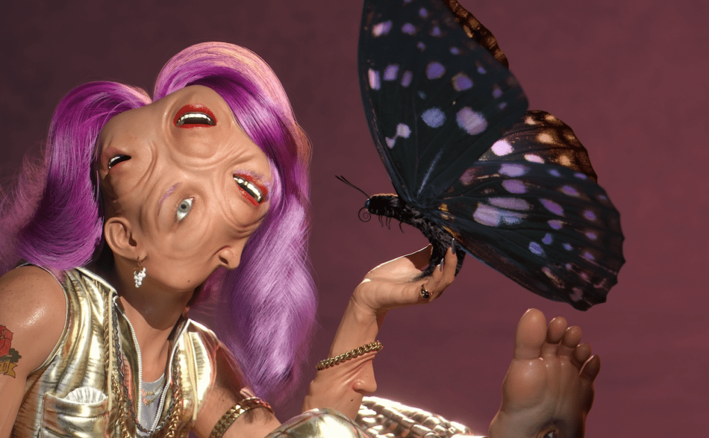 C’est une chimère affublée de 10 doigts dont un est en forme de papillon. Dotée de trois yeux, de trois bouches et de trois nez, Cassia Popée n’est pas caractérisée par la binarité.