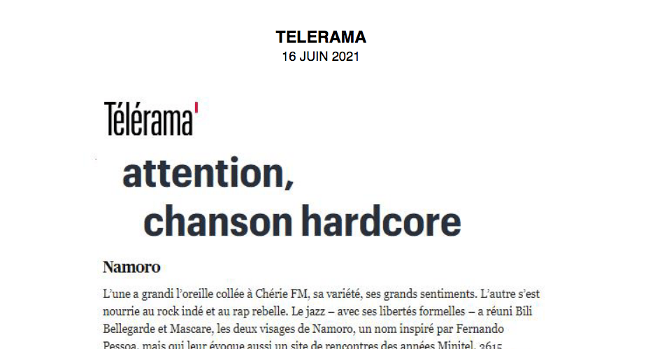 « Namoro incarne avec puissance une vision poétique radicale oscillant entre musiques électroniques, expérimentations punk et spoken-word incandescent. »